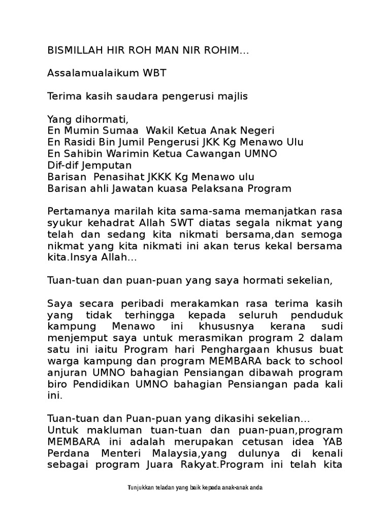 Teks Ucapan Perasmian Ketua Kampung